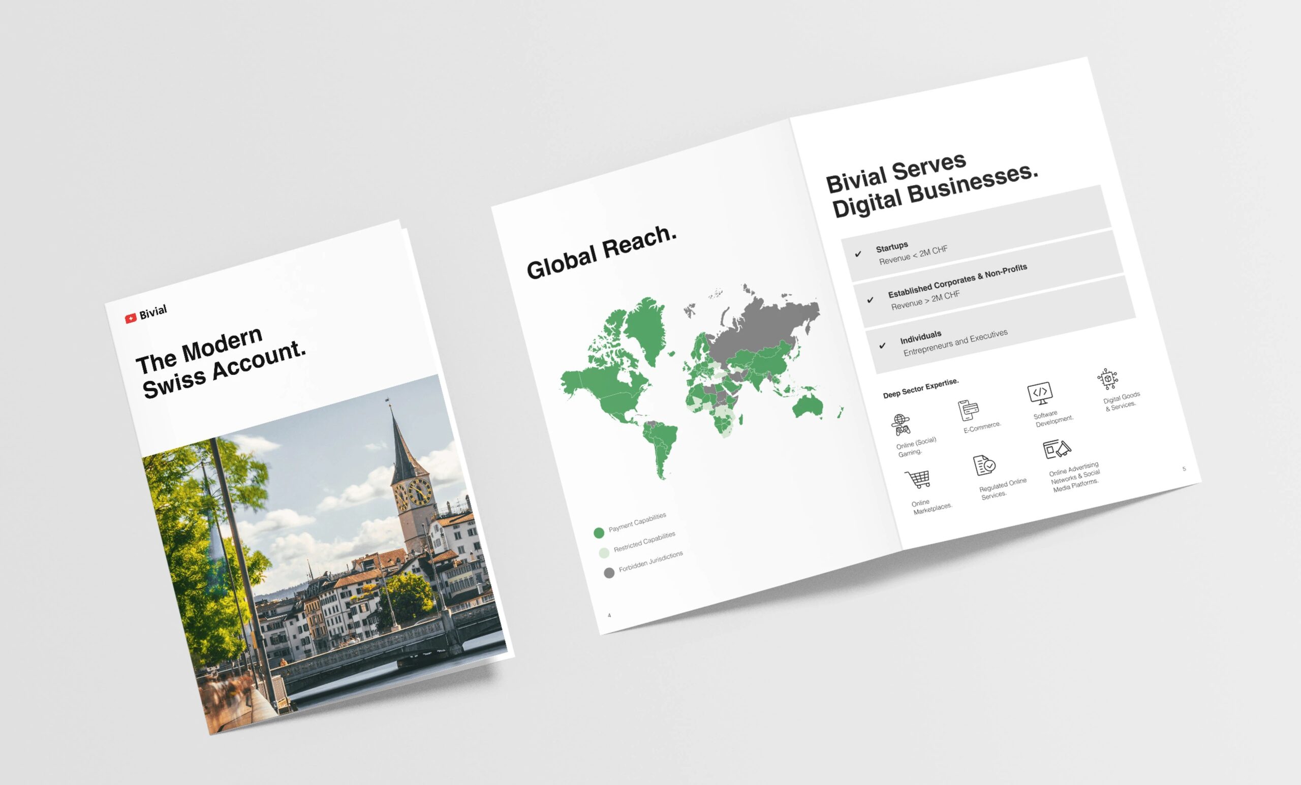 From the logo mark to the banking dashboard, every element of Bivial’s identity is grounded in usability, scalability, and trust. The result is a cohesive, confident brand that speaks clearly to a global audience built in Switzerland, made for the world.
