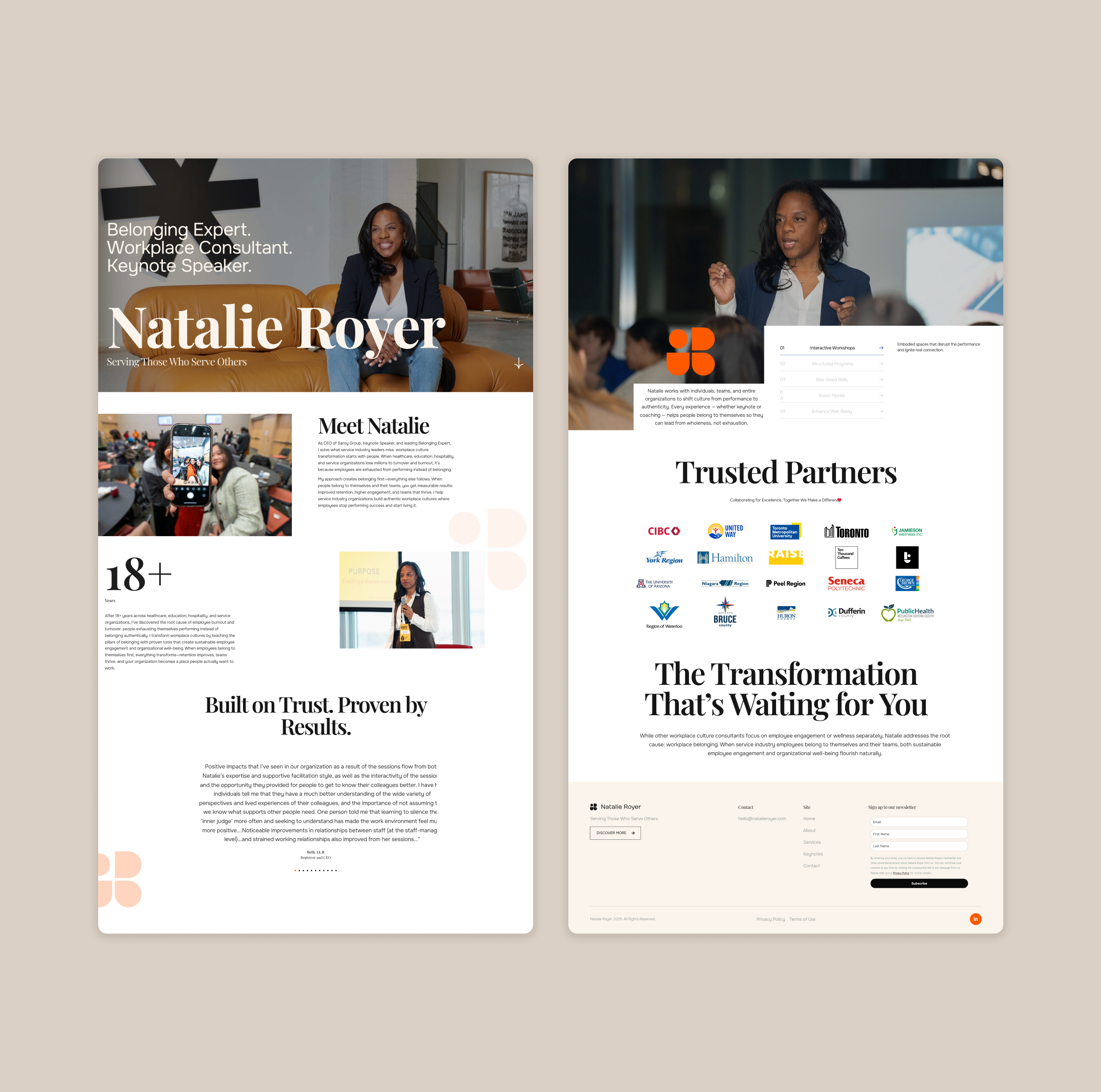 From burnout to belonging – a brand built for impact, healing, and homecoming. Natalie Royer is not just a personal brand — she’s a movement. A speaker, coach, and visionary with a deeply human mission: to guide others home to themselves after burnout, disconnection, and the pressure to constantly perform. Our task was to capture that emotional weight and clarity in a brand identity that feels empowering, safe, and bold.